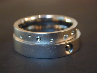 リング自体はマットなつや消し加工にして目や星をイメージしている部分のみ光らせています。