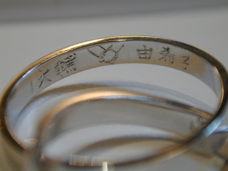 またこのリングの特徴はそれだけではなく、リング内側に漢字とひらがなを彫った文字等にも現れています。