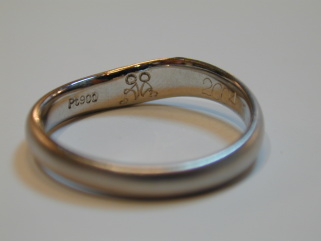 そしてこのマリッジリングのポイントは、リング内側に背中合わせに座ってるお二人の絵を手彫りで彫った事です。