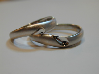 マットなつや消しのリングデザインに、リングを重ねるとハートが浮き出るデザインです。