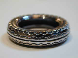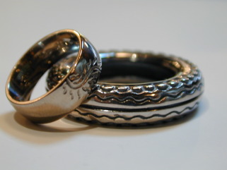 男性用のリングは、こだわりのタイアでもあるダンロップのTT100をイメージして製作しています。
