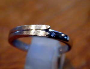 リングはつや有りで、メインの板は、つや消しにしてその横に雪の結晶を彫りました。