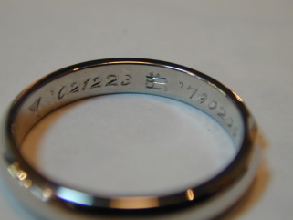 先ずリング内側には、携帯電話の絵文字を利用してお二人の記念日を彫りました。