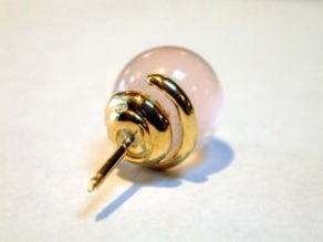 このピン・ブローチは丸玉のローズ・クオーツを使用した